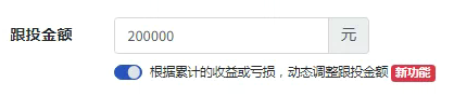 新增了【动态调整跟投金额】的设置项,随着克隆交易的运行,系统可根据运行以来的盈亏情况,自动调整跟投金额。这解决了随着盈利或亏损的不断增加,但仍按照固定金额计算买卖数量而偶尔导致的交易数量不合理问题。