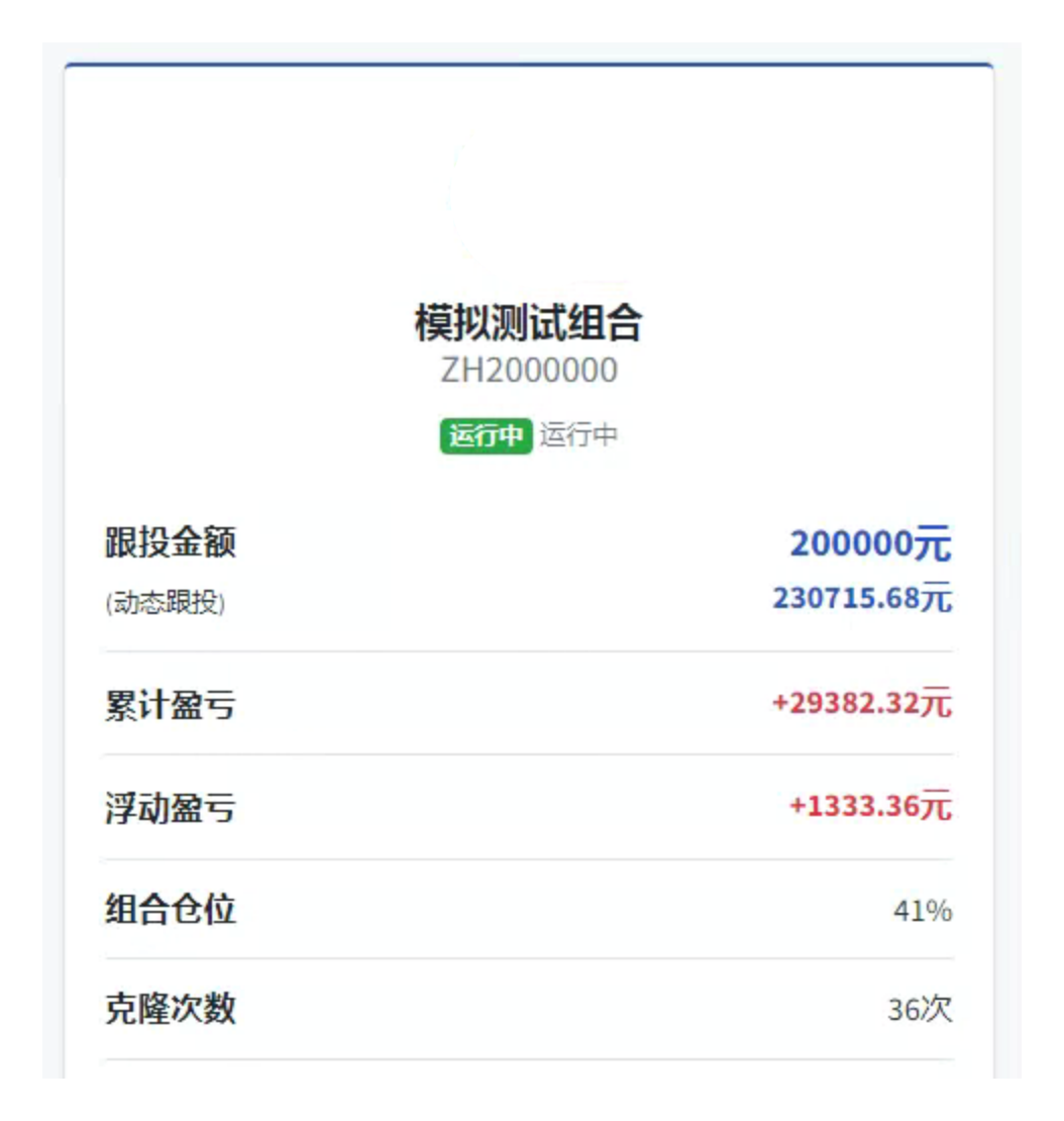浮动盈亏:指克隆的股票实盘成功操作买入后,尚未进行卖出、仍然持有的部分的浮动盈亏。注意:若有多个组合克隆同一只股票,则该股票的浮动盈亏数据可能会混淆。