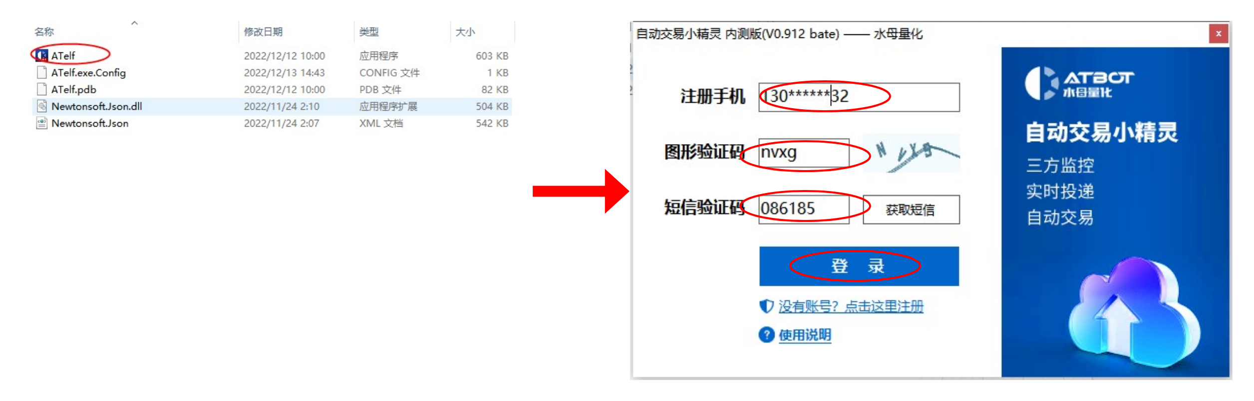 1. 打开ATelf,输入注册手机号,完成图形验证码的内容点击获取短信,当收到短信后将验证码填写到输入框内,点击登录。