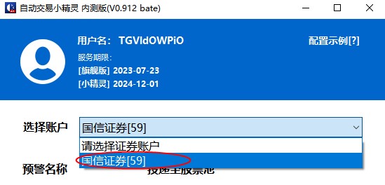 2. 在选择账户这里选择你要接收预警信号的证券账号。