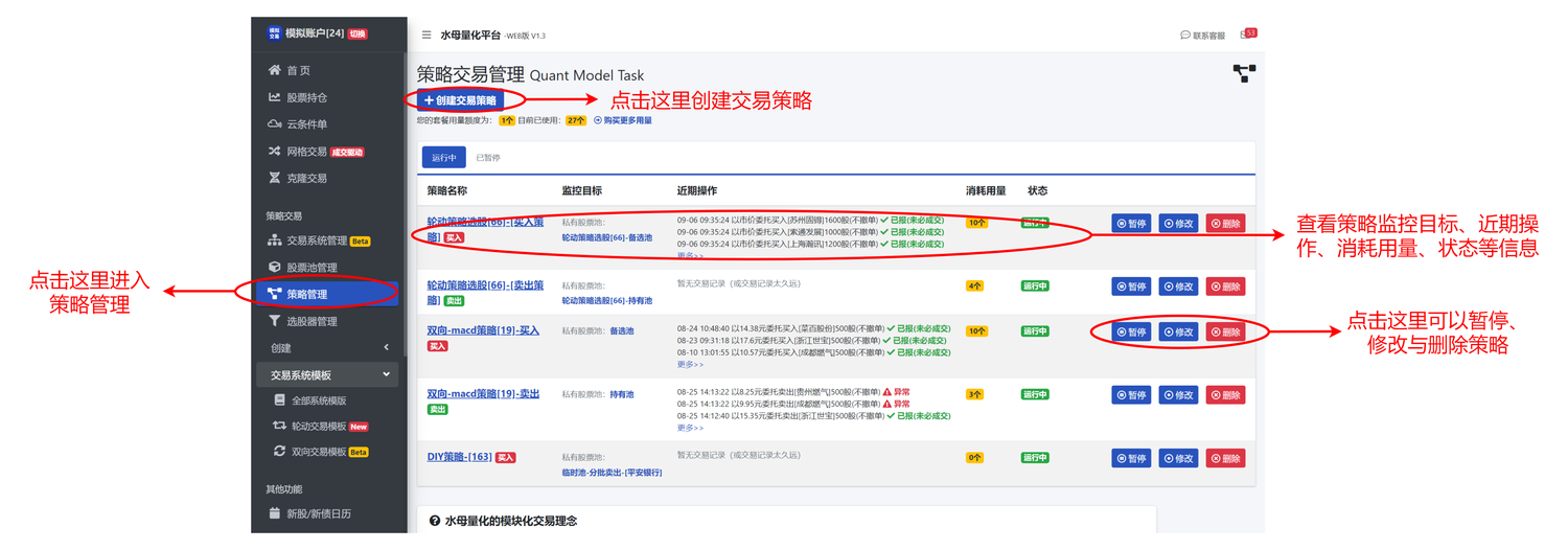 目录 搜索 什么是水母量化?本软件的优势比传统软件更高效安全、稳定、可靠功能一览(图文介绍)实现原理常见问题什么是交易主机?极速与AI主机有何区别?极速主机的典型使用场景严选券商产品定价联系我们新手指南水母量化全功能新手教程如何在微信使用水母量化WEB版?如何在pc端使用水母量化WEB版如何在app中使用水母量化?如何使用融资融券(信用账户)?如何方便快捷的进入服务号?如何绑定微信服务号网格交易类功能网格交易介绍功能详解运行原理(到价驱动型)网格驱动模式智能配对网格自动配对的规则智能预埋单拐点模式拐点交易单边买卖限制高低开优化关于高开/低开处理暂停高抛/低吸持仓限制强制买卖智能止盈底仓卖光的处理其他高级参数网格交易回测新手指南批量网格回测视频教程与案例回合制网格交易介绍智能化网格交易实战案例做与不做网格交易的区别创建网格交易设置AI主机网格设置极速主机网格设置策略交易类功能交易程序创建交易程序交易程序管理页可视化策略设计面板股票池股票池管理页股票池创建页策略交易功能及使用技巧批量导入第三方股票方法策略单策略单管理页策略单创建页函数因子一览表自定义公式使用说明设置案例三线共振止盈止损BOLL下轨买入上轨卖出KDJ金叉买入死叉卖出MACD金叉买入死叉卖出自动打板自动定投回合制网格交易DIY网格交易视频教程与案例策略交易功能及使用技巧构建任意周期的技术指标交易策略选股器选股器管理页选股器创建页选股器因子表选股器实战案例DIY自定义选股条件策略交易功能及使用技巧交易程序模板打板助手使用教程视频教程与案例打板客套餐撤单策略功能介绍零秒打板实战案例打板助手2.2介绍大单事件因子逃板助手视频教程与案例逃板助手介绍逃板助手实战案例轮动交易(基础版)轮动交易专业版与基础版的区别使用教程视频教程与案例轮动交易(专业版)轮动交易专业版与基础版的区别使用教程视频教程与案例分时双向交易模板支持T+0交易的分钟级指标因子正式上线分时双向策略模板使用教程使用教程视频教程与案例K线双向交易模板双向循环交易模板详解K线双向交易策略简介K线双向交易回测工具实战教程其他程序模板先买后卖定期买入打板助手开板卖出日内高抛低吸紧急买入紧急卖出止盈止损策略先卖后买回本卖出分批卖出分批买入均线死叉(日线)策略均线金叉(日线)策略指标卖出(分时)策略指标买入(分时)策略均线卖出(分时) 均线买入(分时)BOLL布林带策略MACD策略KDJ策略策略回测我的回测工程策略分享平台轮动策略回测(基础版)轮动回测介绍视频教程与案例K线双向策略回测(日线)用数千种因子回测5000多只股票,一分钟有结果:K线双向交易回测工具实战教程视频教程与案例克隆交易类功能克隆交易创建页克隆交易自适应买入克隆交易的注意事项视频教程与案例云条件单类功能云条件单管理页创建云条件单价格条件单时间条件单拐点条件单涨跌幅条件单AI助手自动打新/打债自动国债逆回购部分教学与案例培训课程回放视频教程直播课程第一期:轮动策略实战课程直播【2023.06.28 】第二期:轮动策略实战细节讲解【2023.07.13 】第三期:策略设计器实战细节讲解【2023.07.28 】第四期:水母量化成交驱动型网格讲解【2023.08.11】使用价格单来止盈止损使用拐点单让盈利最大化使用网格交易法-入门想要智能追涨杀跌,及时止盈止损,“涨跌幅条件单”或是你不二的选择水母量化教你如何创建一个最简单的条件单—价格条件单担心抄底抄到半山腰?水母量化教你如何使用拐点买入条件单安利一个自动赚钱的小功能~自动卖出逃顶的技巧水母量化实用功能介绍五种卖出逃顶技巧进入服务号的快捷方式常见问题A股的申报下单时间详解价格笼子机制什么是预授权模拟交易的宽松、仿真模式有何区别?委托方式介绍警惕非法的"云交易"、“微交易”重要声明更新日志2025.08.14 图片批量导入功能上线,添加股票/ETF/可转债更方便了2025.08.14 升级公告:策略单新增一批基本面因子2025.04.24 【批量网格回测】功能重磅上线2025.03.14 巧用策略单DIY回合制网格,克服传统网格面对单边行情的缺陷2025.02.20 T0革命:水母量化能用可转债日内指标进行T+0高频交易了2025.02.13 升级公告:【量化交流社区】栏目上线2025.01.03 防炸板利器来了——打板助手新增“撤单策略”功能2024.12.11 5、15、30分钟等多周期指标条件来了!双向交易(多周期)模板上线2024.10.30 逃顶神器:零秒逃板,锁定开板最佳卖点,精准止盈2024.09.26 零秒打板:打板助手2.0震撼上线,牛股妖股一网打尽!2024.09.24 毫秒触发!水母量化新增【高频策略监控】与【高频选股监控】功能2024.08.14 最后一块拼图——策略回测功能上线2024.06.17 升级公告:极速系统将支持【网格交易预埋单】功能2024.05.22 [可转债T0模板]上线,助你快速构建无限制T0套利策略2024.03.26 [解套宝T+0交易系统]上线!自动做T时代到来2024.03.07 升级公告:任务积分系统上线2024.01.18 分钟级【网格回测】上线,助你探寻最佳的网格参数2024.01.04 水母量化APP升级:智能表单上线2023.12.22 水母量化APP升级:可通过股票详情K线图查看历史买卖点2023-11-20 水母量化(安卓版)APP升级公告2023-10-19 交易系统收益统计功能上线2023-10-10 网格交易新增【等差网格】模式2023-10-10 告别高买低卖,网