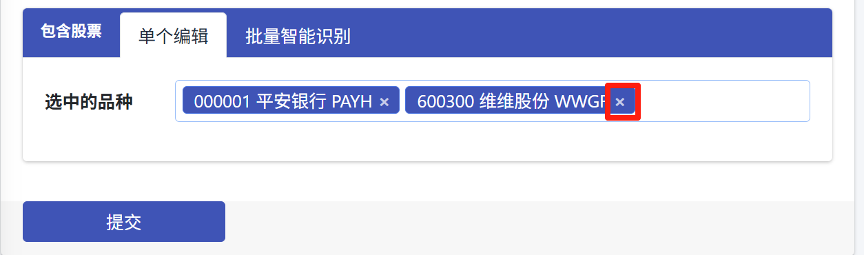 如果选择单个编辑,只需要在选中品种中,输入股票代码,这样下拉栏中会出现该股票代码相应得股票,点击选中即可。