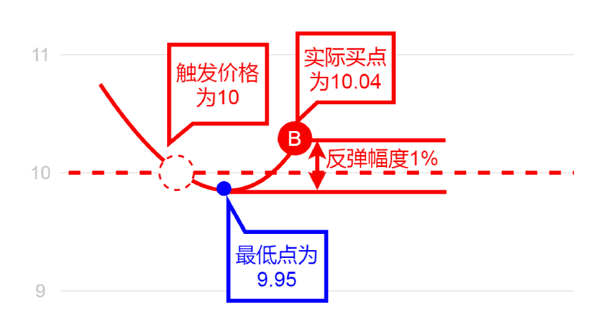 当股价快速下跌或上涨后反弹或回落的最低点价格较触发价格的差距不大,可能会导致买入的价格比触发价格高,卖出的价格比触发价格低