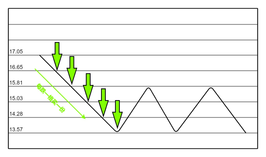 以17.05为基准价,每下跌5%为一格,确定补仓价格。
