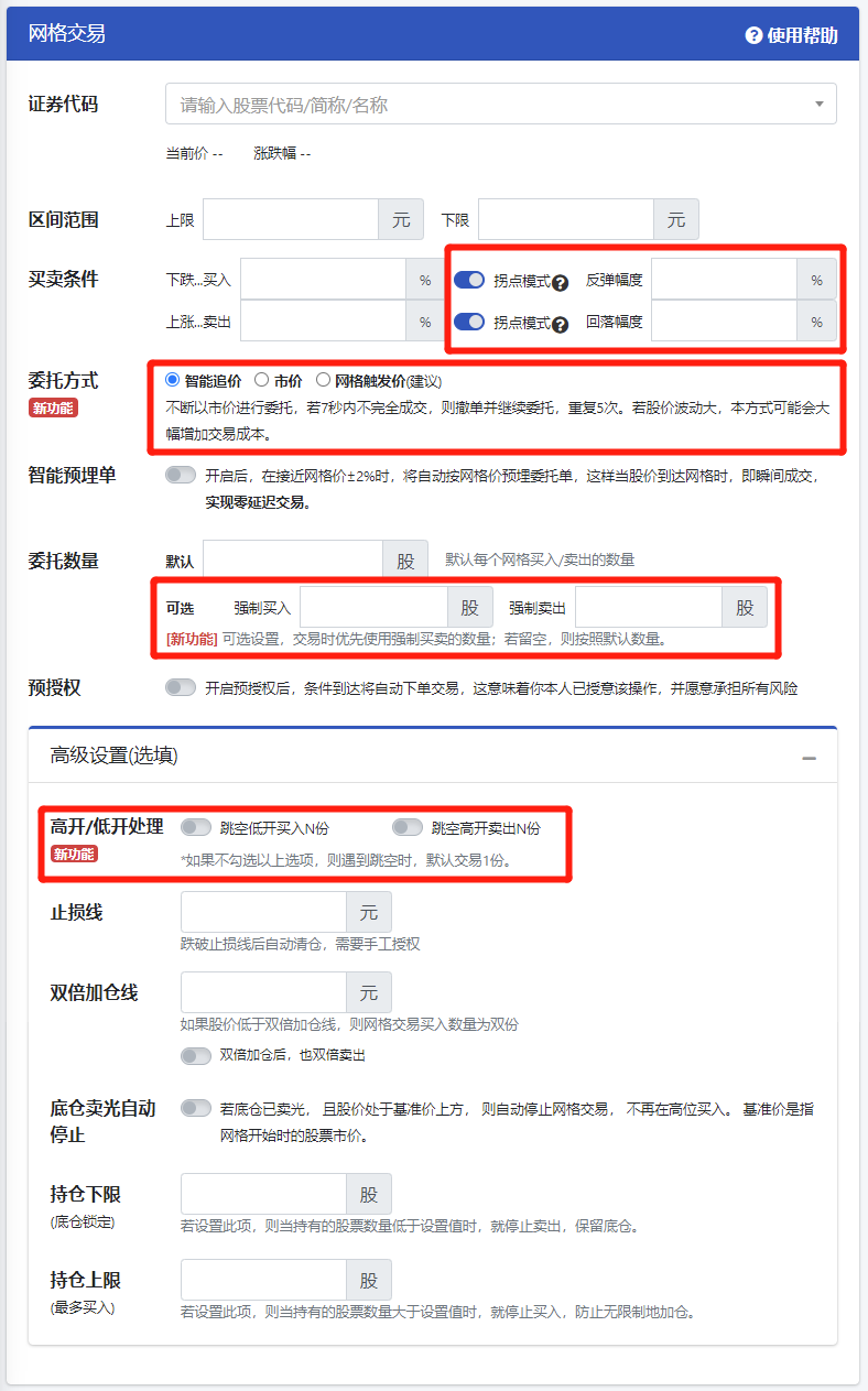 水母云交易系统的网格交易迎来了4项功能的更新: