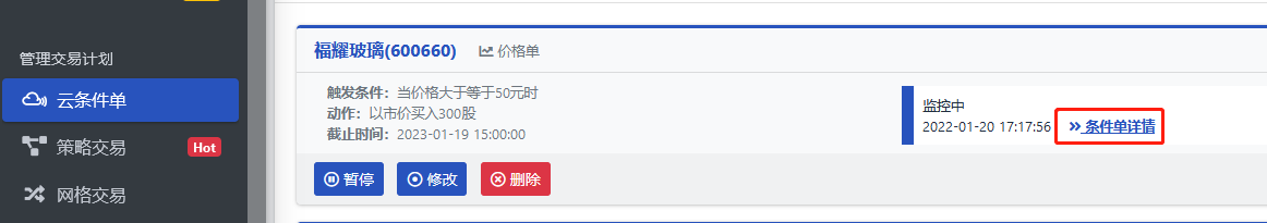 更新查看云条件单详情,可以看到条件单监控、执行的每一个细节和时间节点