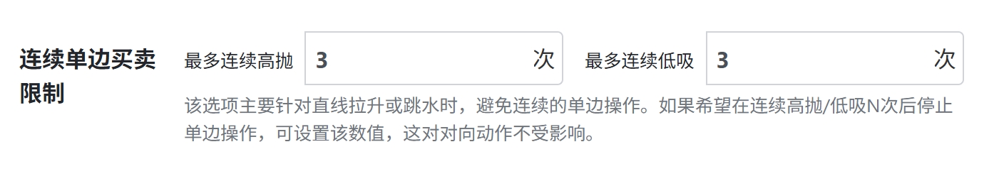 该选项主要针对直线拉升或跳水时,避免连续的单边操作。