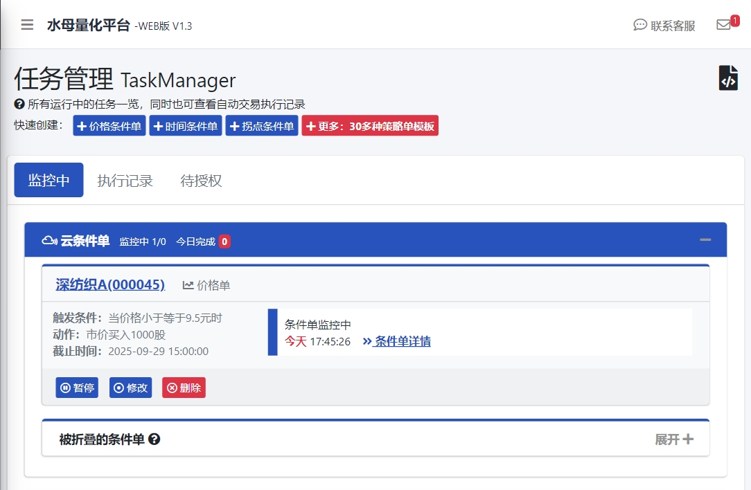 4、成功提交的条件单可在任务管理栏目的监控中列表查看状态