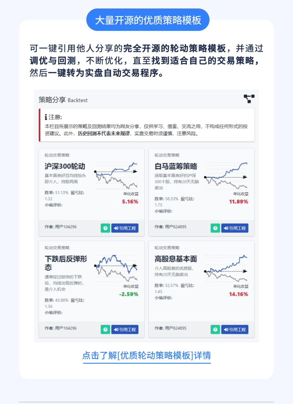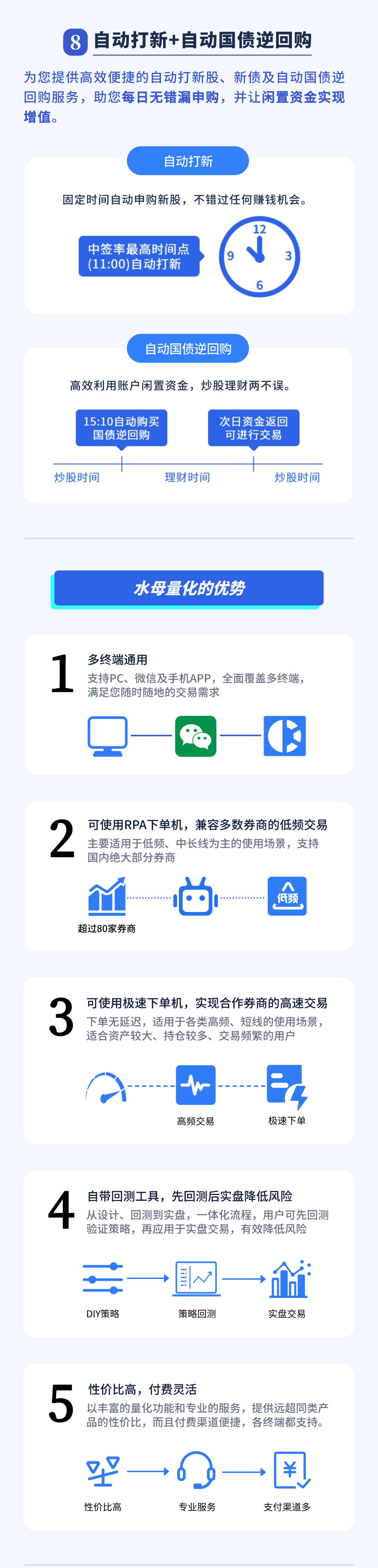 水母量化系统是目前行业内功能最多、通用性最好、综合性能最强的专业量化软件之一,其主要特色,是能够无代码、免编程地个性化设计量化交易策略,大幅降低使用门槛。此外,系统也提供了网格交易、组合自动跟投、自动打新打债、自动国债逆回购等常见量化功能。 如果您是第一次使用水母量化,强烈建议您看一下[功能导航地图],这将对您了解本产品有极大的帮助。 文档更新时间: 2025-05-12 17:23 作者:admin
