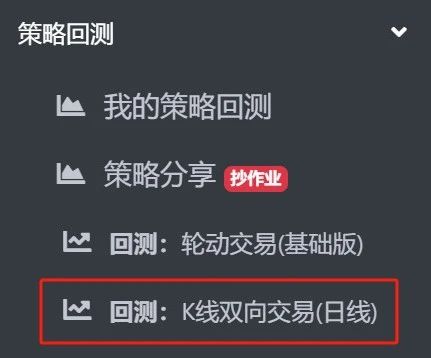 在水母量化平台中 ,进入策略回测栏目,选择K线双向交易回测功能。