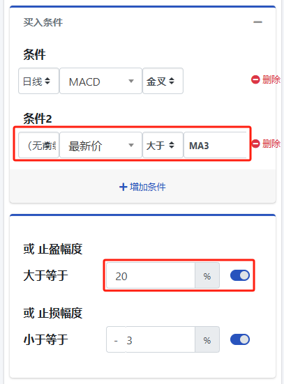 增加买入条件:当天最新价大于 MA3(3日均线价格)