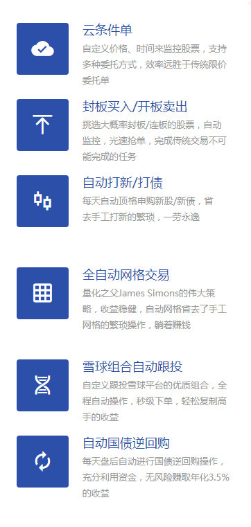 [云交易]是云财经公司设计的一种通用的云端股票自动交易系统,内置多达70多家券商的交易接口,只需在云财经APP登入券商账号,即可实现丰富的股票自动交易功能,如自动盯盘买卖、涨停封板抢单买入、涨停开板卖出、自动打新、自动网格交易等,真正无人值守自动交易,革命性地提高炒股效率。