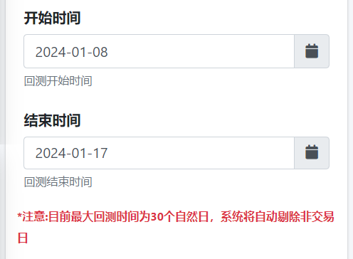 选择您的回测开始和结束时间,未来我们会推出周期更久的回测。