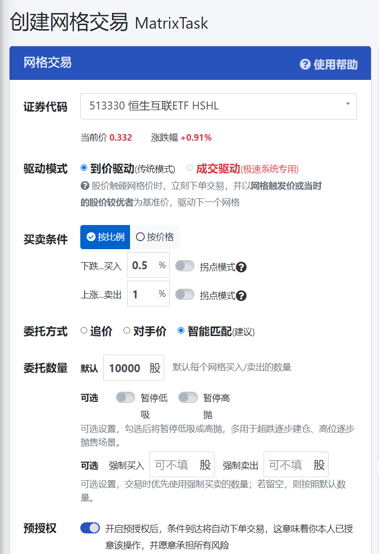 - 买卖条件:例如价格每上涨1%高抛,每下跌0.5%低吸。