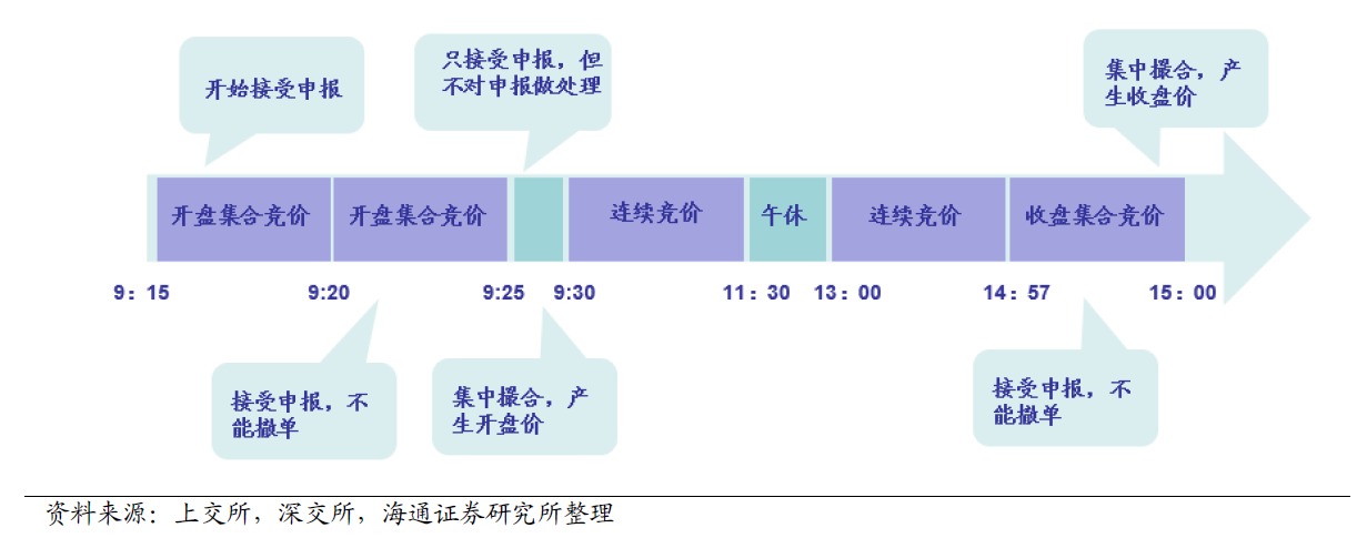 根据上深交所A股交易规则,9:15至9:25为开盘集合竞价时间,9:30至11:30、13:00至14:57为连续竞价时间,14:57至15:00为收盘集合竞价时间; 水母云交易系统的时间条件单最早可在9:25开始下单,设置了智能预埋单的条件单,也在9:25开始下单 每个交易日9:20至9:25的开盘集合竞价阶段、14:57至15:00的收盘集合竞价阶段,集合竞价阶段不能下单、不能创建条件单; 文档更新时间: 2023-06-14 23:25 作者:admin